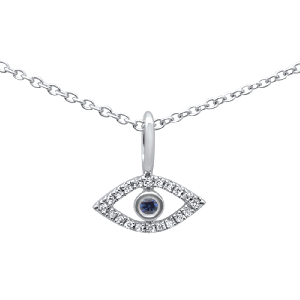 .06ct 14k White Gold Evil Eye Blue Sapphire & Diamond Pendant Necklace 18"