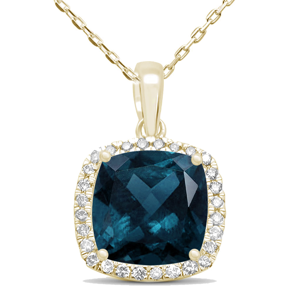 GEMSTONE CLOSEOUT! 3.91ct 10k Yellow Gold Blue Topaz & Diamond Cushion Pendant