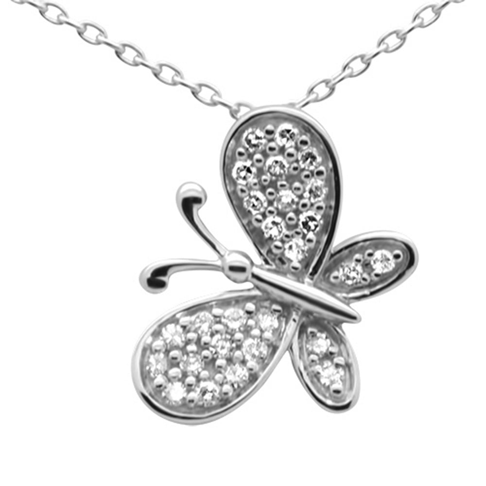 DIAMOND CLOSEOUT! .13ct G SI 14K White Gold Diamond Butterfly Pendant Necklace