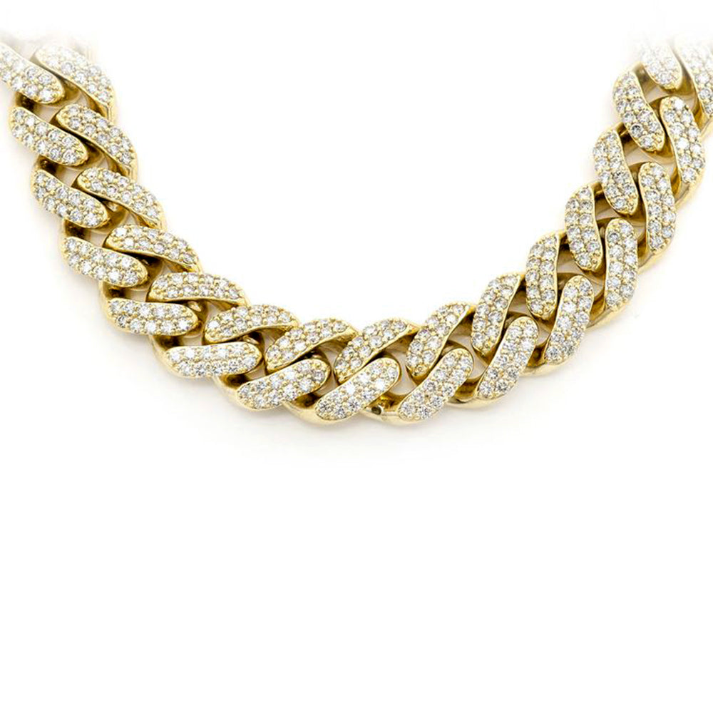 SPECIAL! 9MM 9.21ct 10KT Yellow Gold Diamond Micro Pave Miami Round Cuban Link Necklace 22" Long