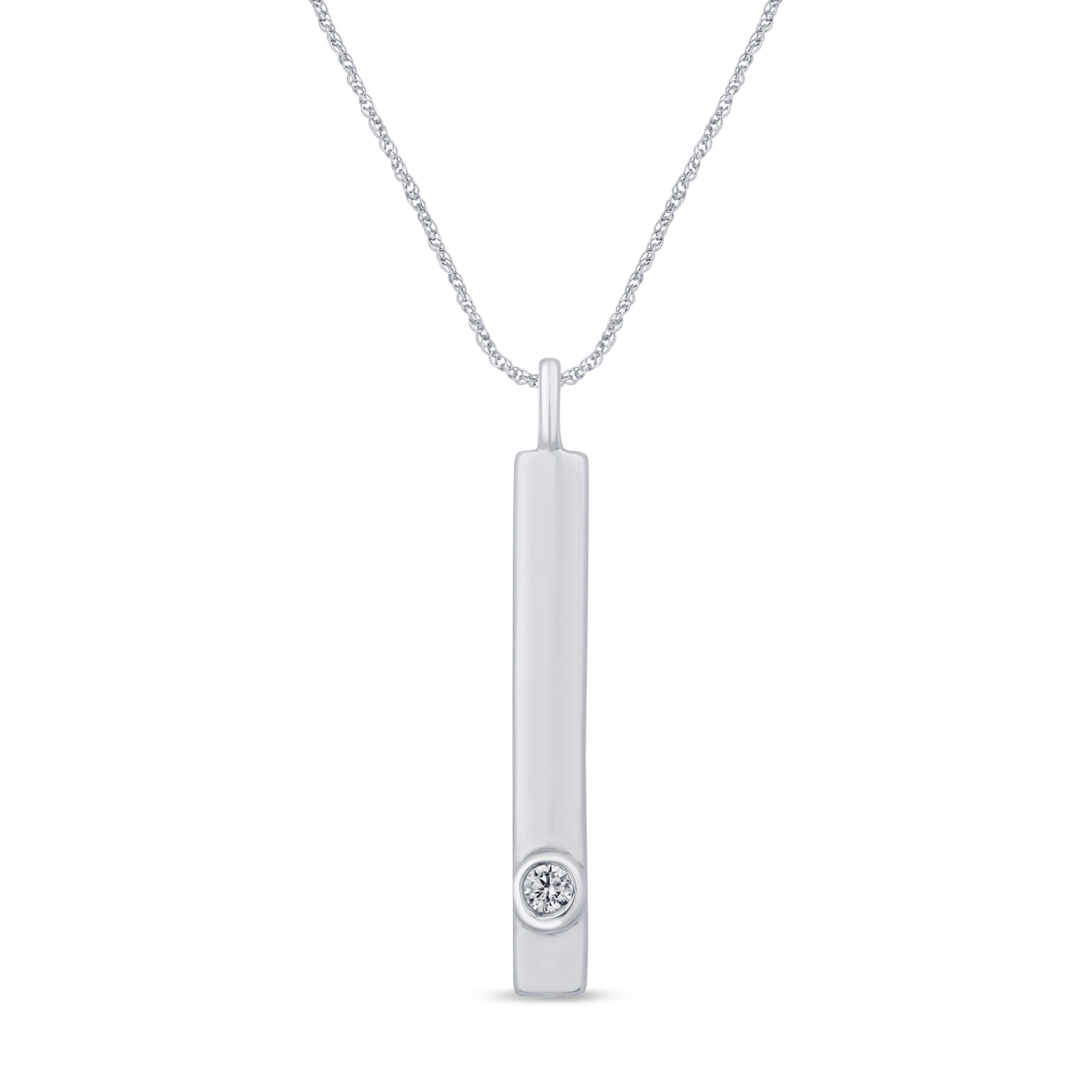 SPECIAL! .02ct G SI 14K White Gold Diamond Bar Pendant Necklace 18"