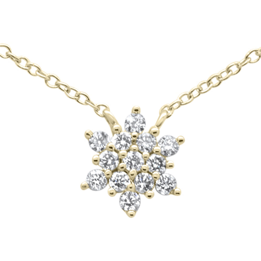 .21ct G SI 14K Yellow Gold Diamond Starburst Pendant Necklace 16-18"