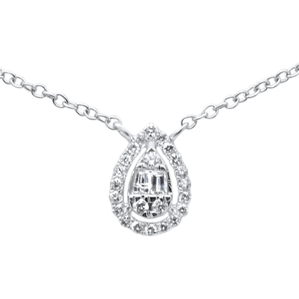 .15ct G SI 14K White Gold Pear Shaped Round & Baguette Diamond Pendant Necklace 16-18"