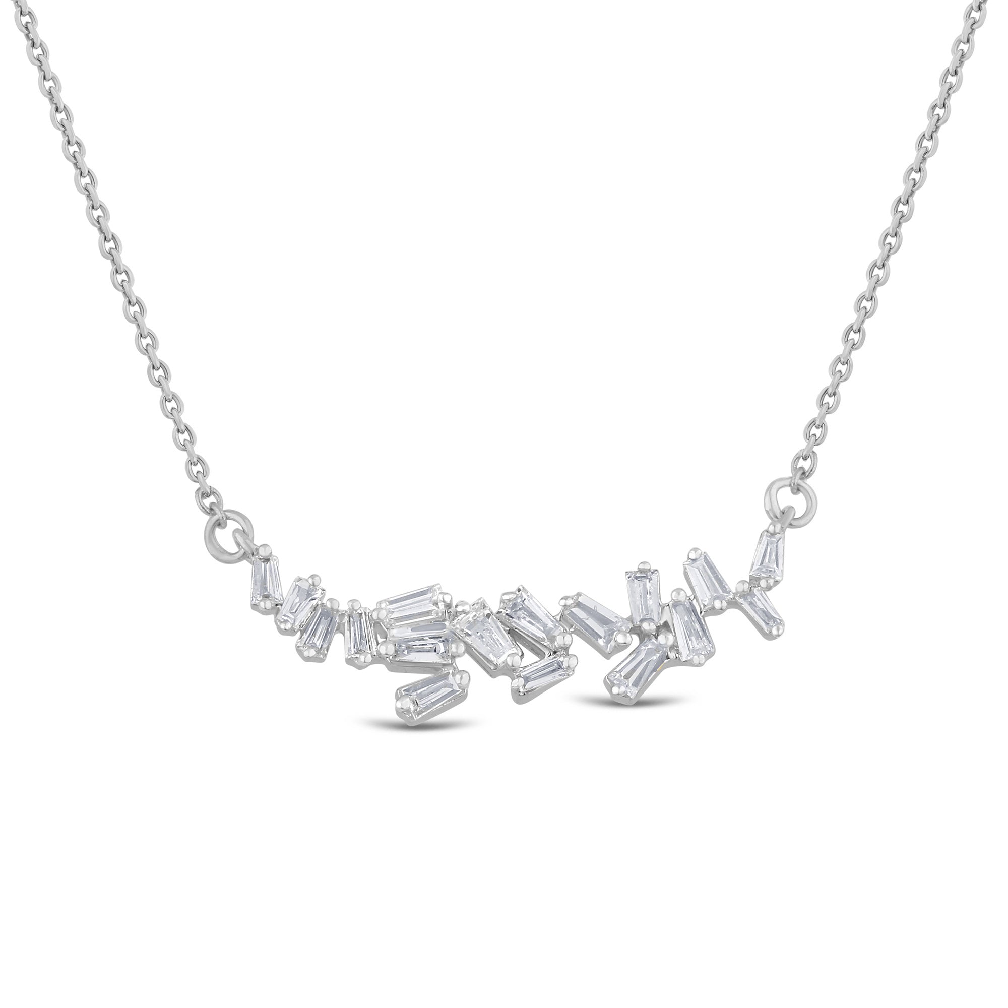 SPECIAL! .22ct G SI 14K White Gold Baguette Diamond Pendant Necklace 18" Long