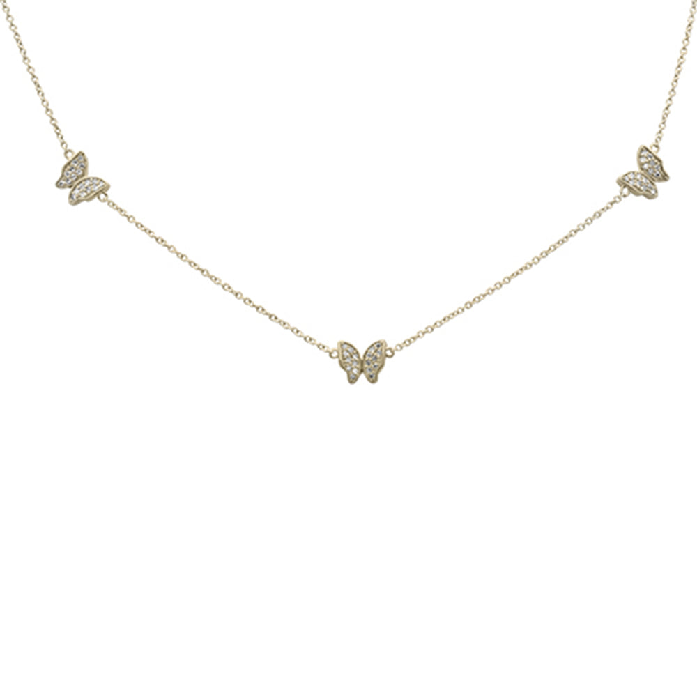 SPECIAL!.16ct G SI 14K Yellow Gold Diamond Butterfly Pendant Necklace 14" Long