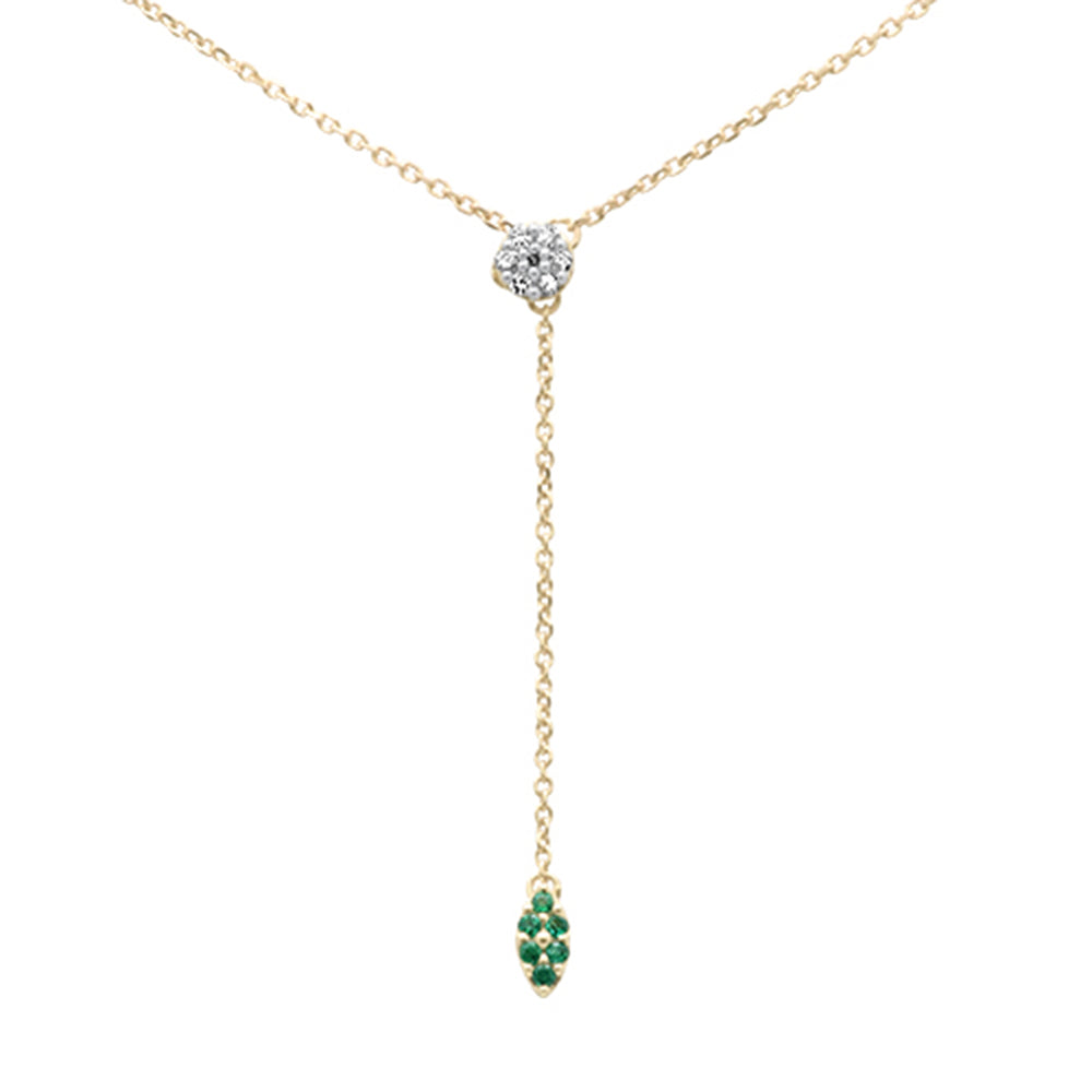.11ct G SI 14K Yellow Gold Diamond & Emerald Gemstone Lariat Pendant Necklace 18" Long