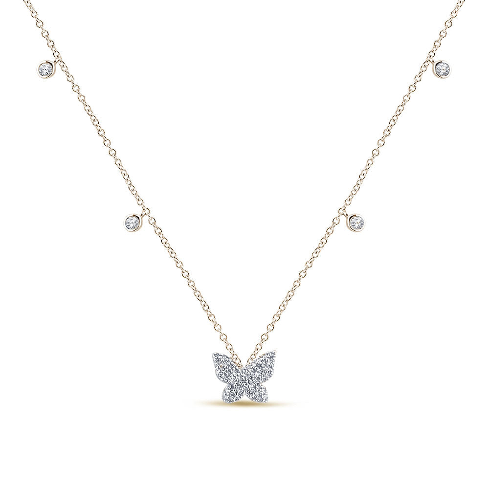 SPECIAL!.22ct G SI 14K Yellow Gold Diamond Butterfly Pendant Necklace 16+2" Ext