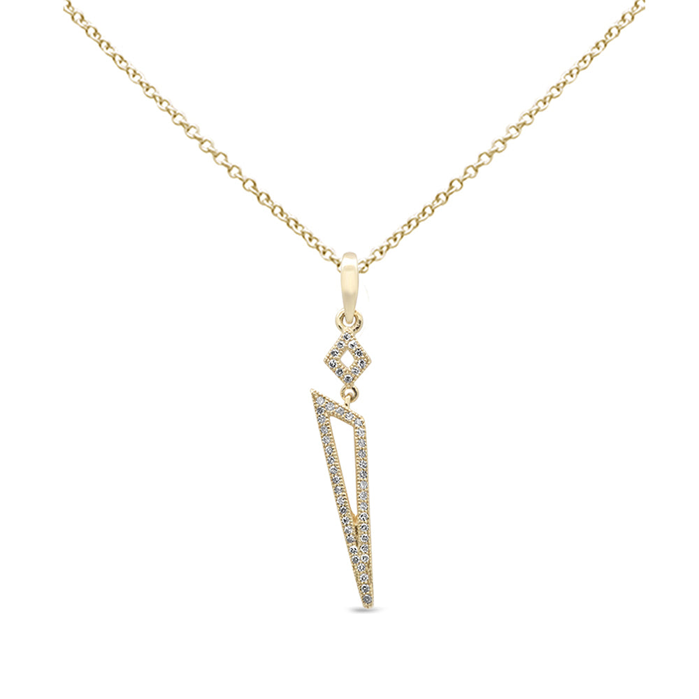 .14ct G SI 14K Yellow Gold Diamond Triangle Pendant Necklace 18" Long