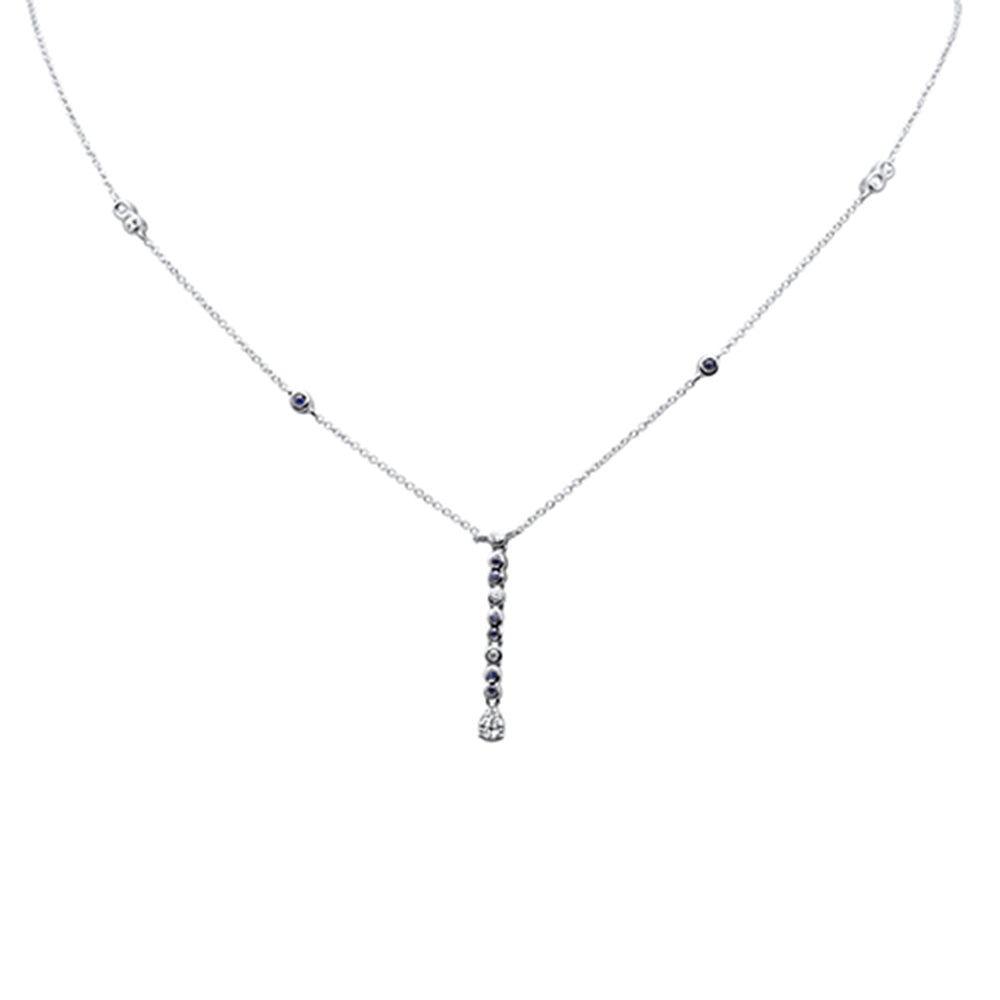 SPECIAL!.23ct G SI 14K White Gold Diamond & Blue Sapphire Gemstone Drop Pendant Necklace 16" + 2" Ext