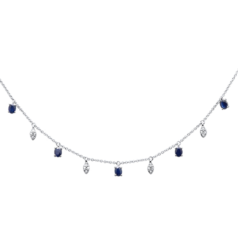 SPECIAL! 1.19ct G SI 14K White Gold Diamond & Blue Sapphire Pendant Necklace 16" +2" EXT