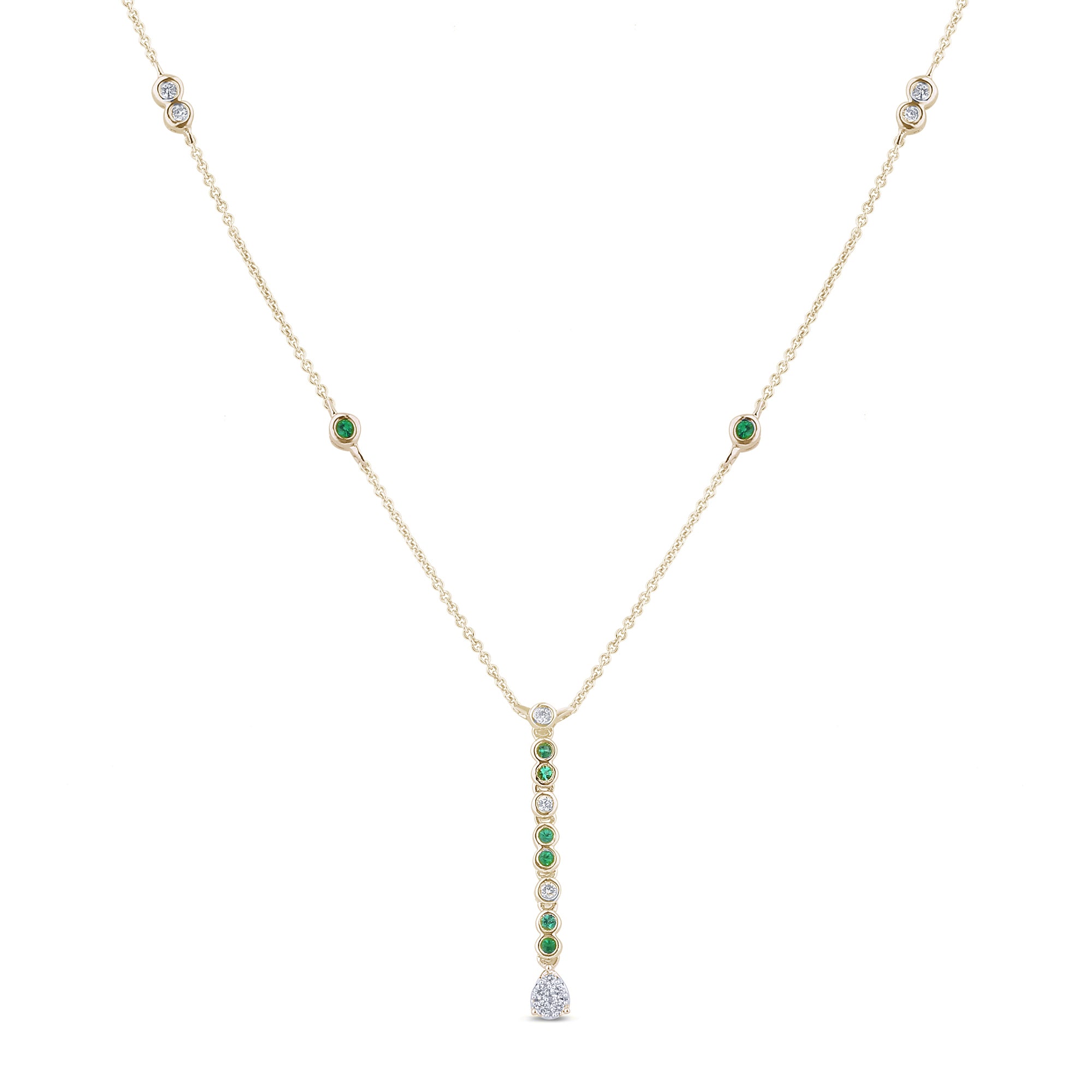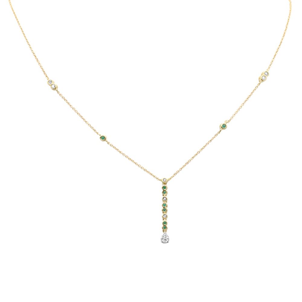 SPECIAL! .21ct G SI 14K Yellow Gold Diamond & Emerald Gemstone Drop Pendant Necklace 16" + 2" Ext