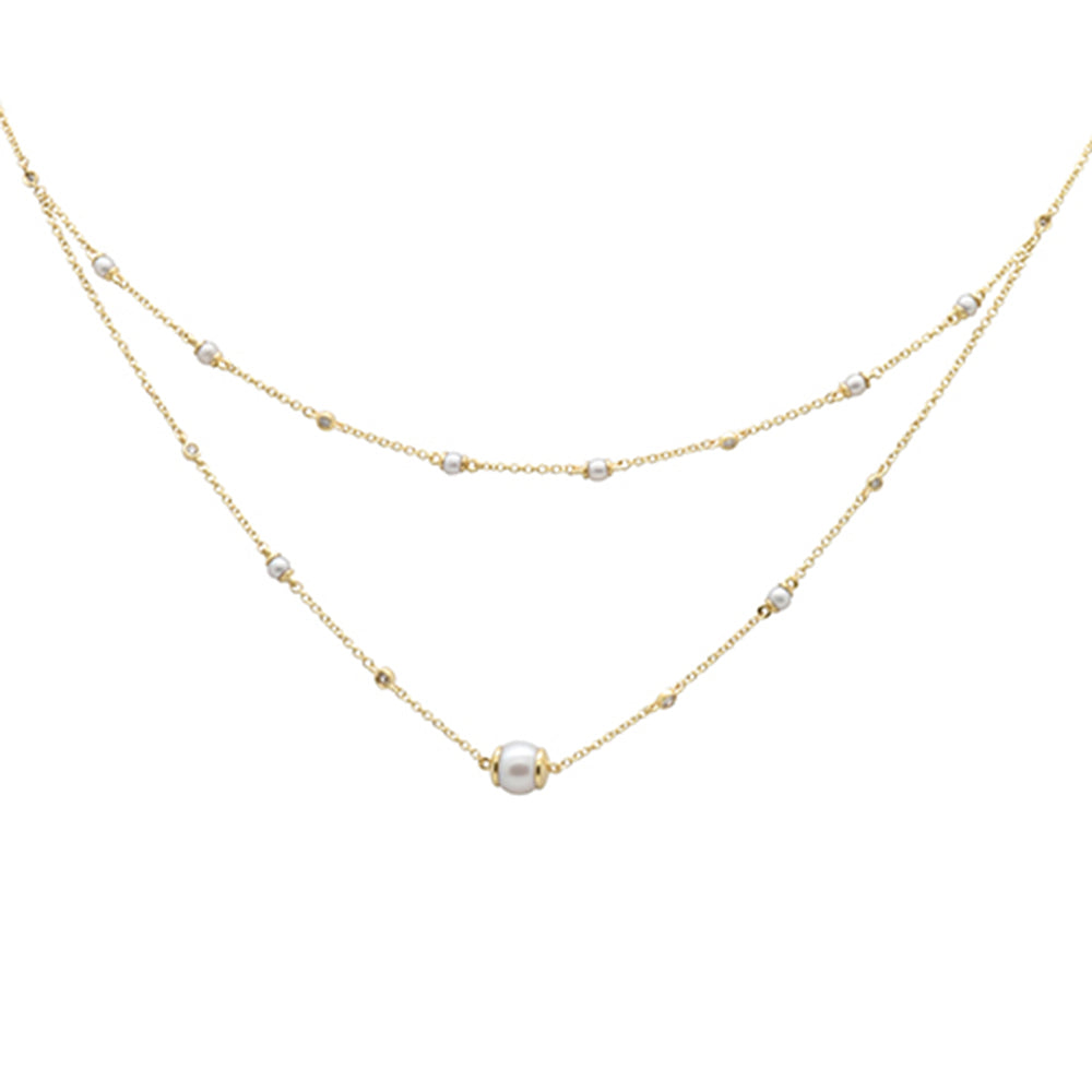 SPECIAL!.20ct G SI 14K Yellow Gold Diamond Double Chain Pearl Pendant Necklace 16+2" Long