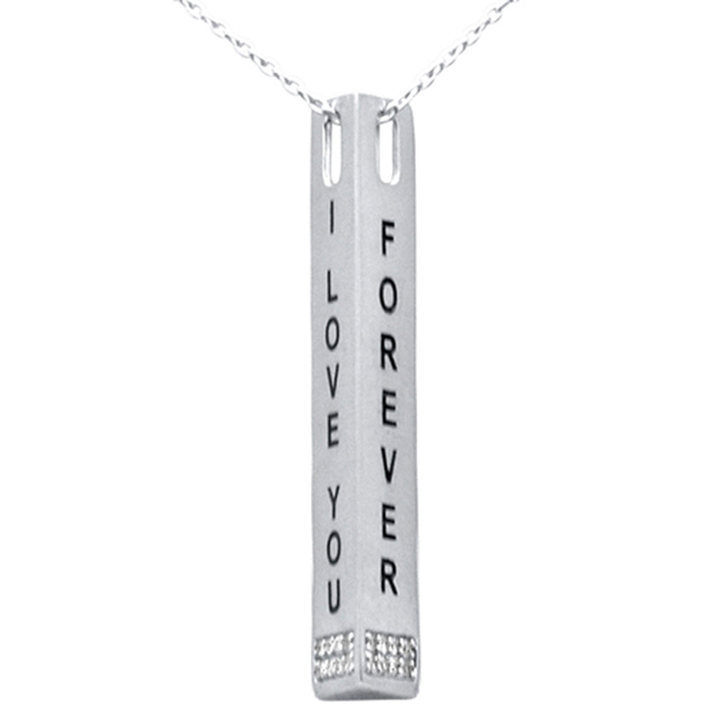 SPECIAL!.08ct G SI 14K White Gold Diamond "I Love You Forever" Engraved Pendant Necklace 18" Long Chain
