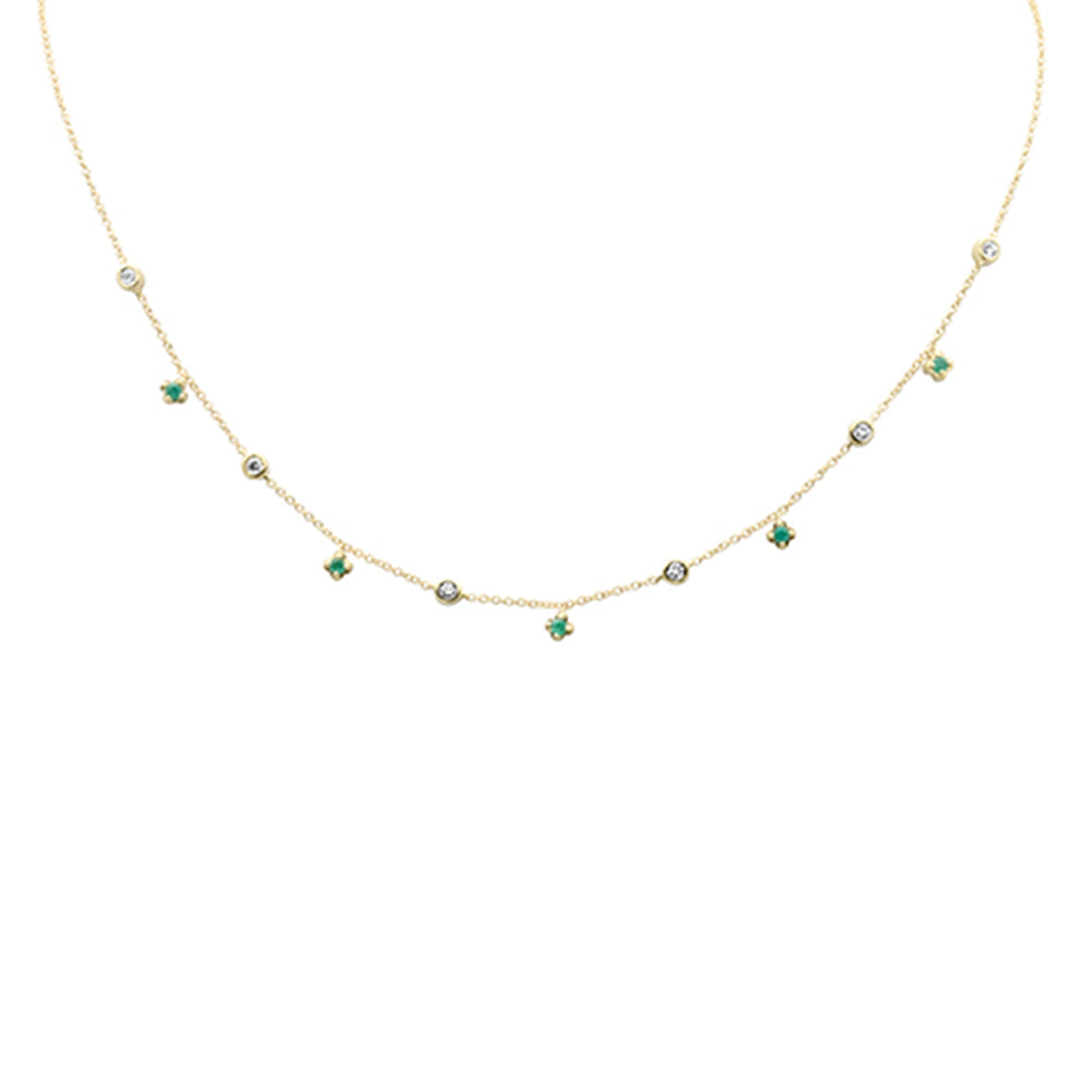 SPECIAL! .32ct G SI 14K Yellow Gold Diamond & Emerald Gemstone Pendant Necklace 16" + 2" Ext