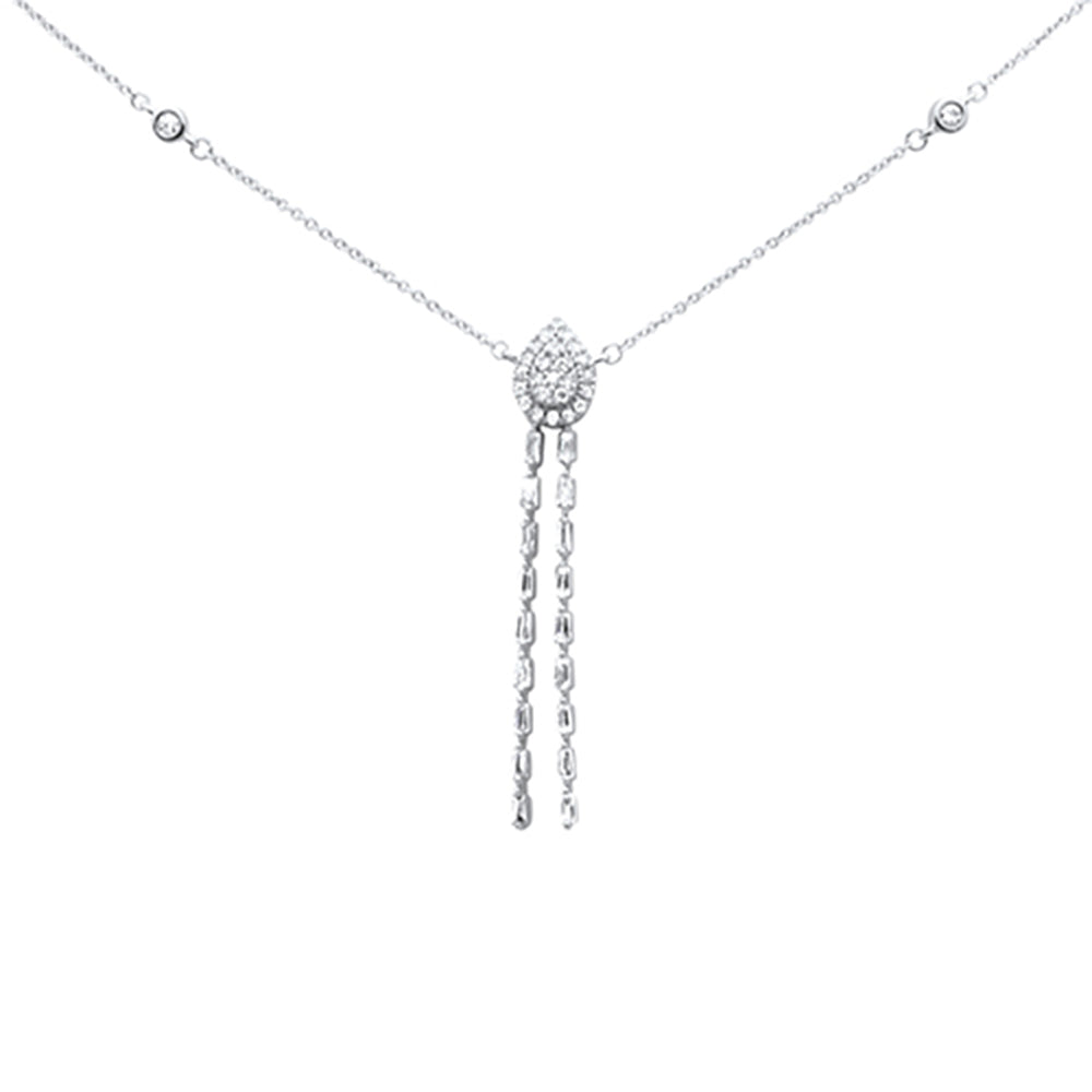 SPECIAL!.55ct G SI 14K White Gold Diamond Round & Baguette Pendant Necklace 16+2" Ext Long