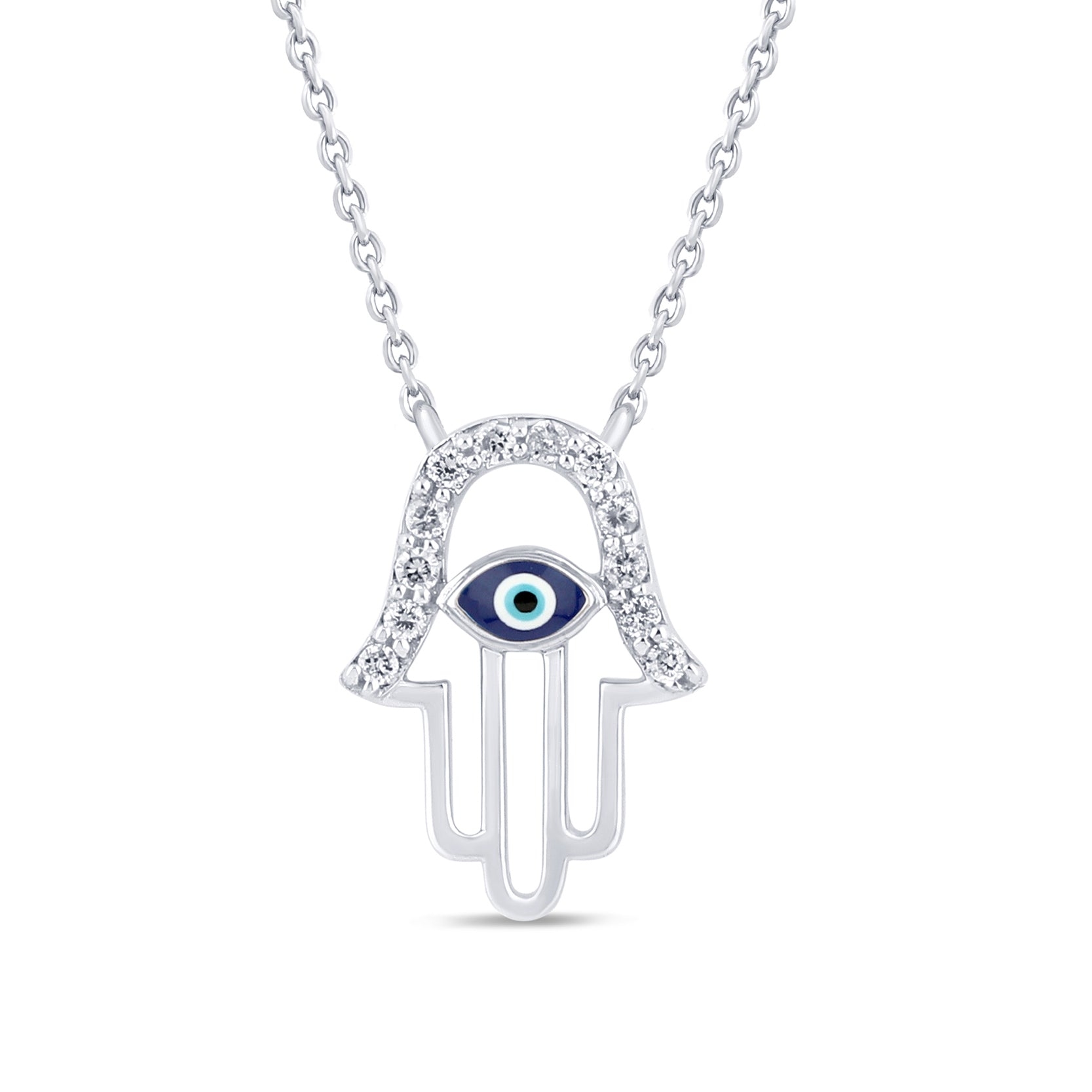 SPECIAL!.07ct G SI 14K White Gold Diamond Hamsa Pendant Necklace 16" +2" EXT