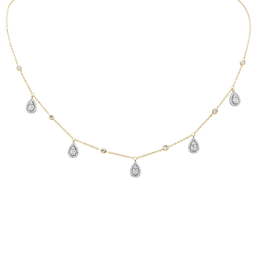 SPECIAL! .75ct G SI 14K Yellow Gold Diamond Round & Baguette Pear Shaped Pendant Necklace 14" +2" EXT