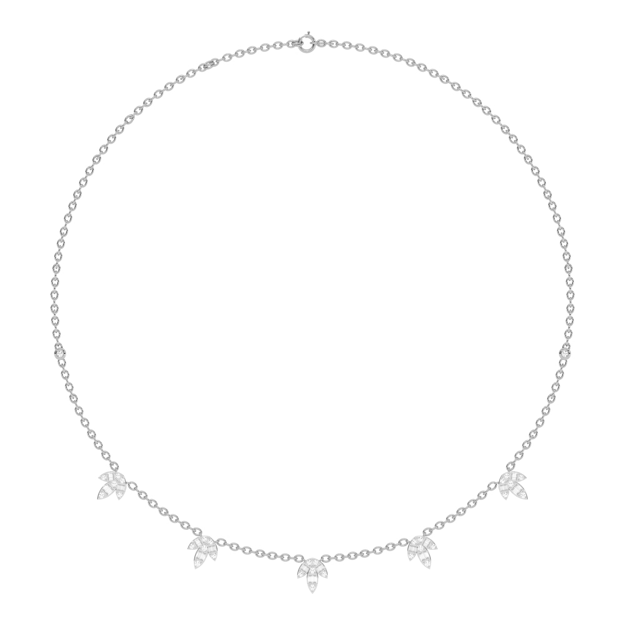 SPECIAL!.89ct G SI 14K White Gold Diamond Round & Baguette Leaf Pendant Necklace 16" +2" EXT