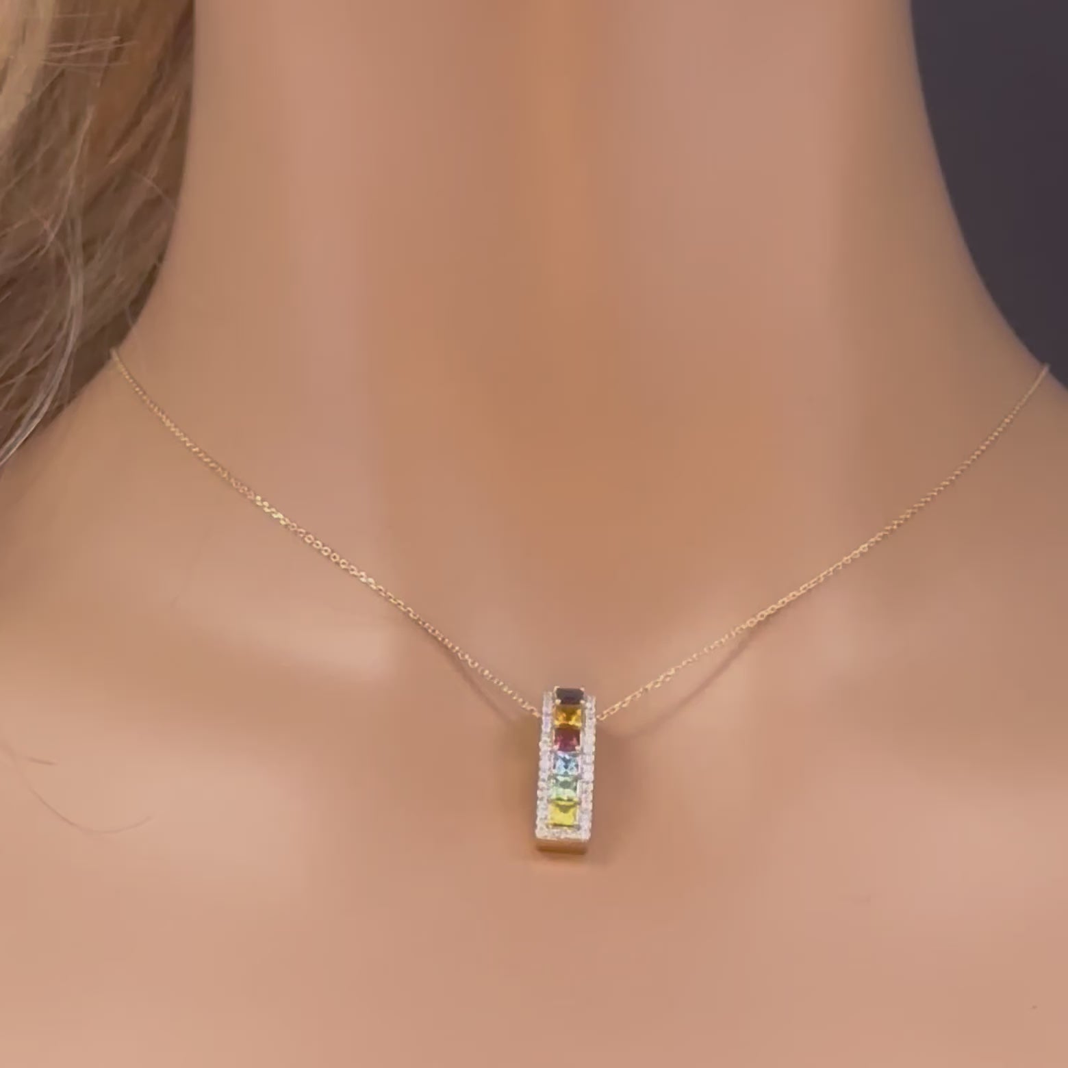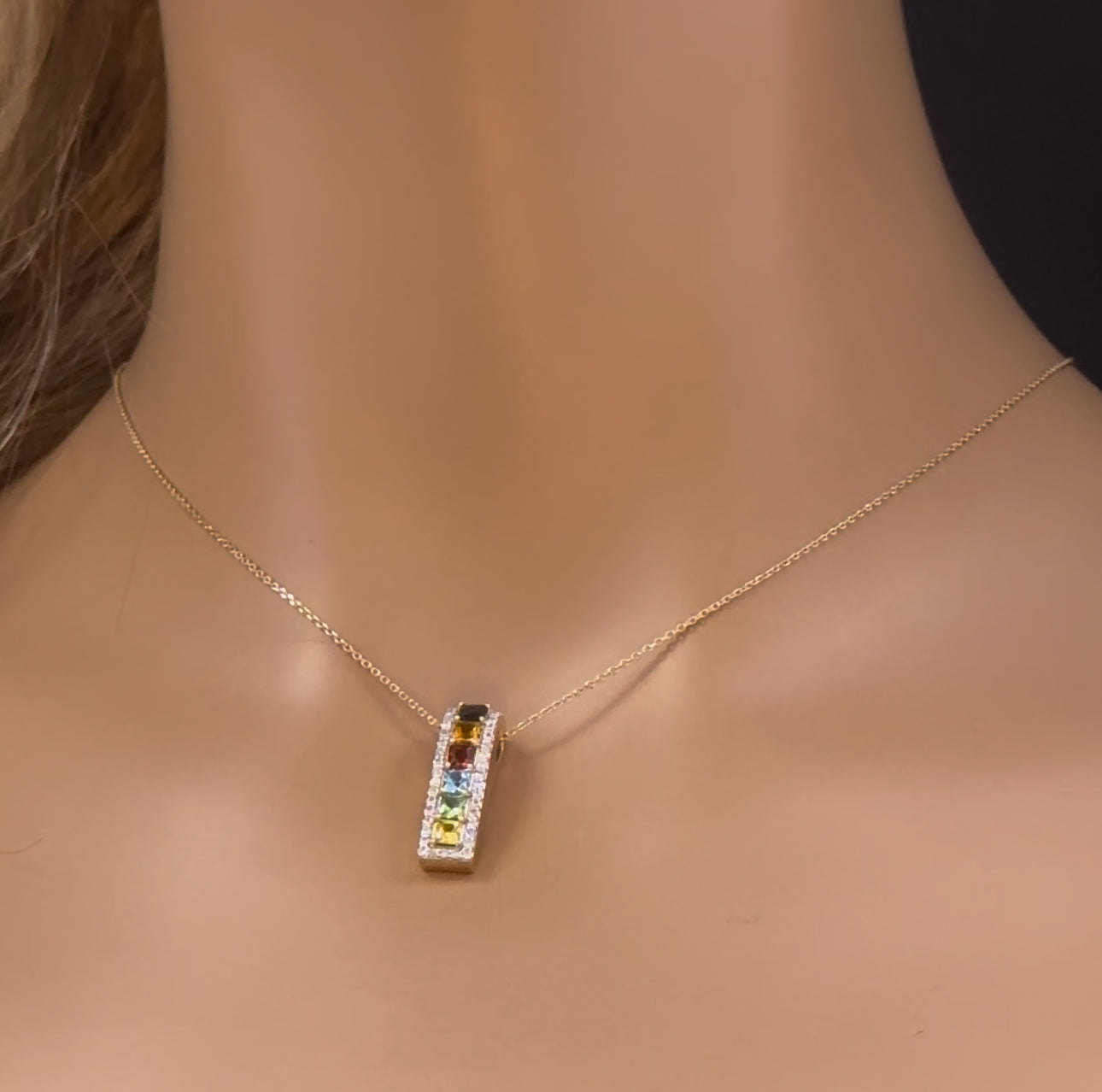 GEMSTONE CLOSEOUT! 1.56ct G SI 14K Yellow Gold Diamond & Multi Color Gemstone Pendant Necklace 16" + 2" Ext.