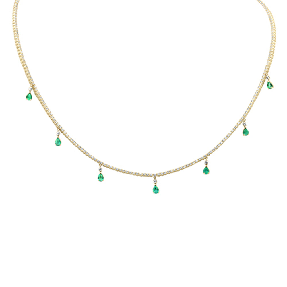 SPECIAL! 3.34ct G SI 14K Yellow Gold Diamond & Emerald Gemstone Dangling Pendant Necklace 14" + 2" EXT