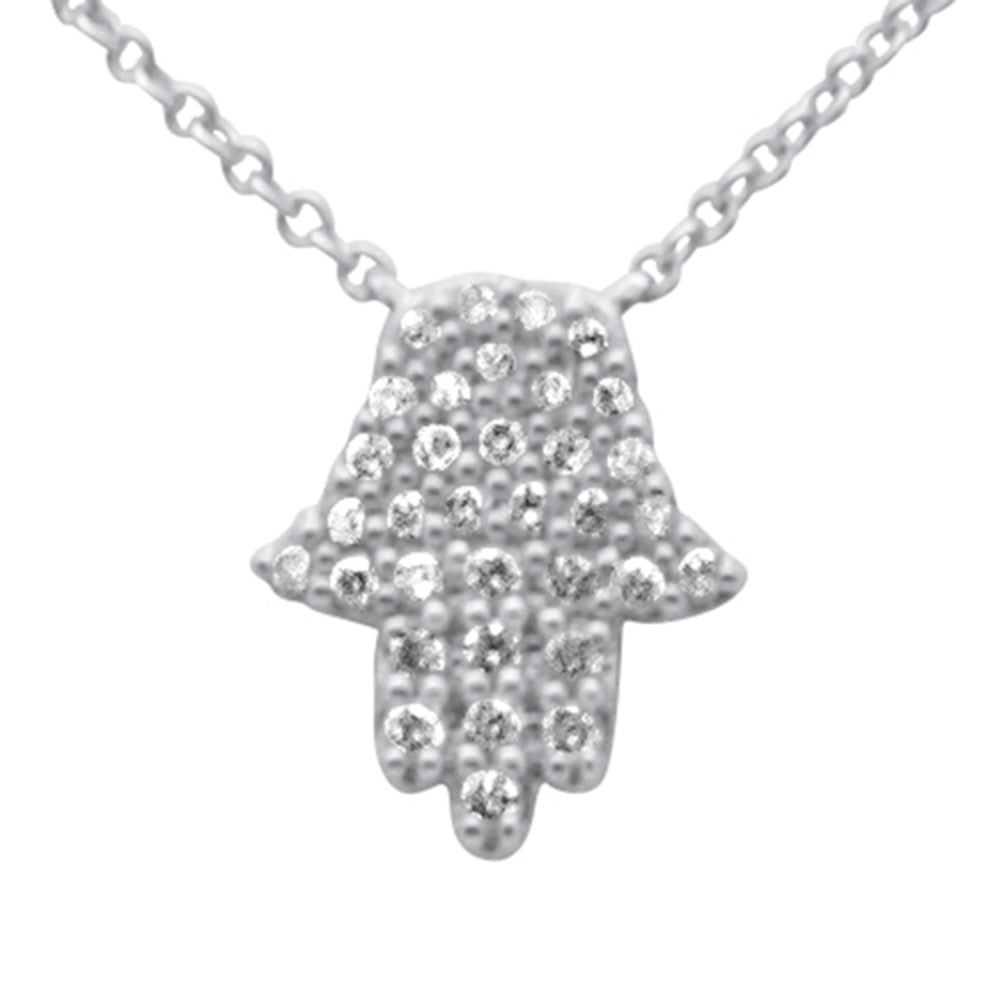 SPECIAL! .18ct G SI 14K White Gold Diamond Hamsa Pendant Necklace 14" + 2" Ext.
