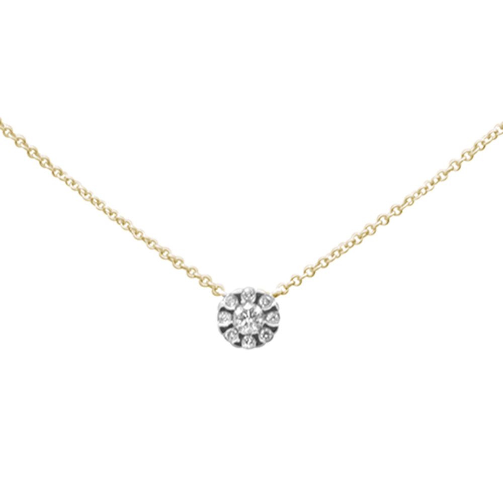 .15ct G SI 14K Yellow Gold Diamond Round Solitaire Style Pendant Necklace 16" + 2" Ext