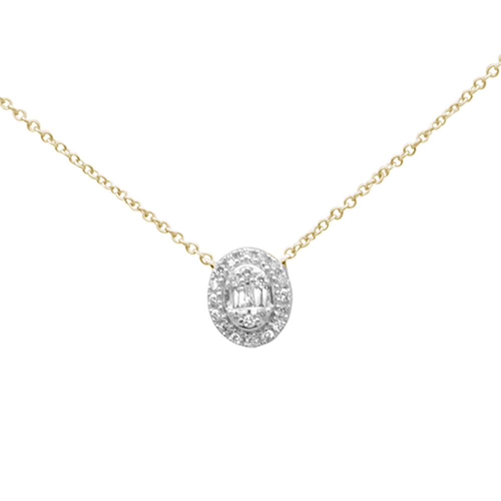SPECIAL! .16ct G SI 14K Yellow Gold Diamond Round & Baguette Oval Shape Pendant Necklace 16" + 2" Ext