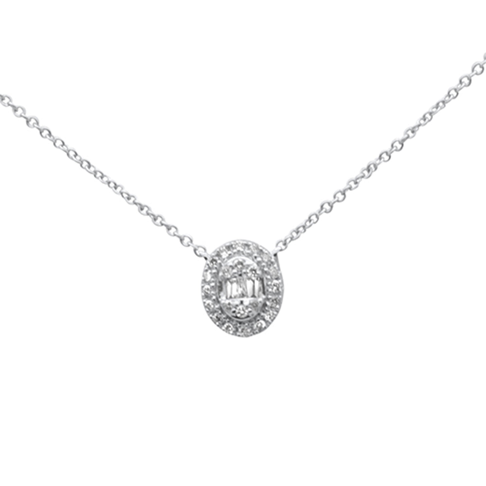 SPECIAL!.16ct G SI 14K White Gold Diamond Round & Baguette Oval Shape Pendant Necklace 16" + 2" Ext