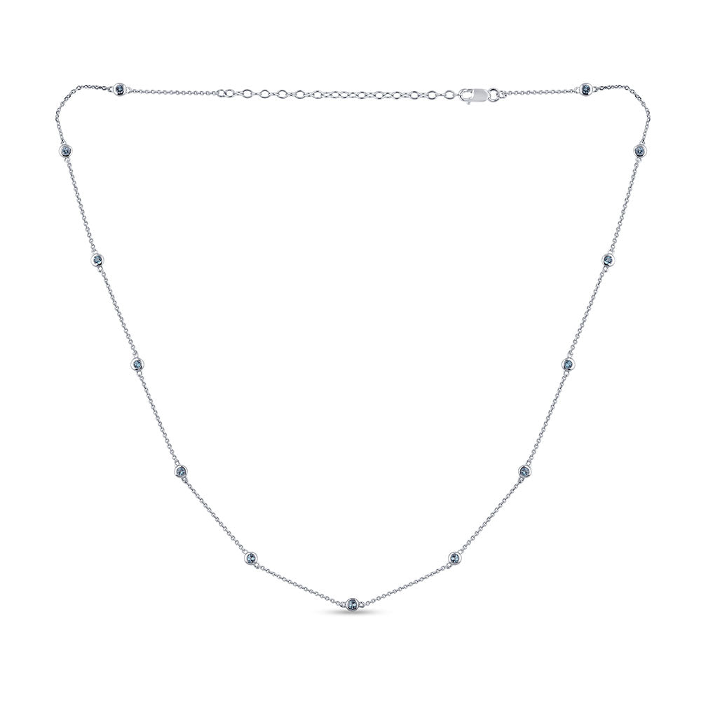 SPECIAL!.52ct G SI 14K White Gold Aquamarine Gemstone Bezel Necklace 16" + 2" EXT