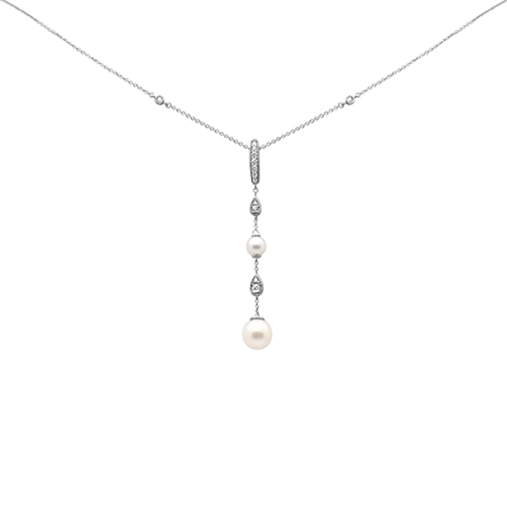 DIAMOND CLOSEOUT! .20ct G SI 14K White Gold Diamond Pearl Drop Pendant Necklace 16" + 2" EXT
