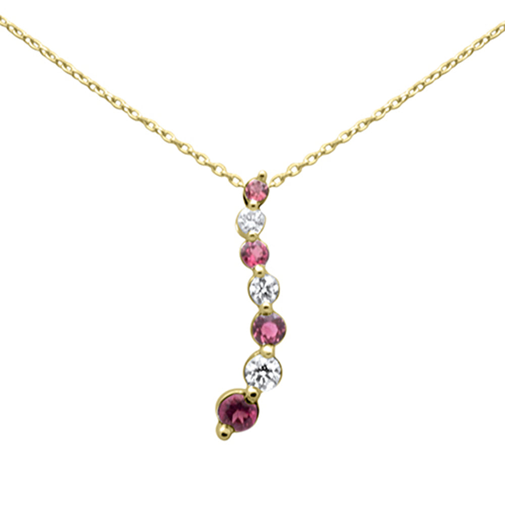 SPECIAL! .21ct, .39ct G SI 14K Yellow Gold Diamond & Pink Tourmaline Gemstone Necklace 20"Long