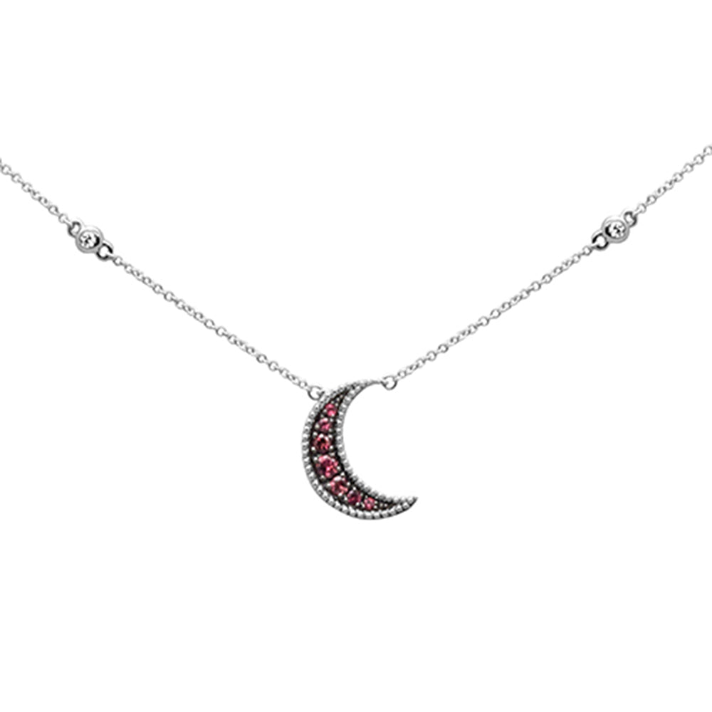 SPECIAL!.25ct G SI 14K White Gold Diamond & Pink Tourmaline Half-Moon Necklace 18" Long