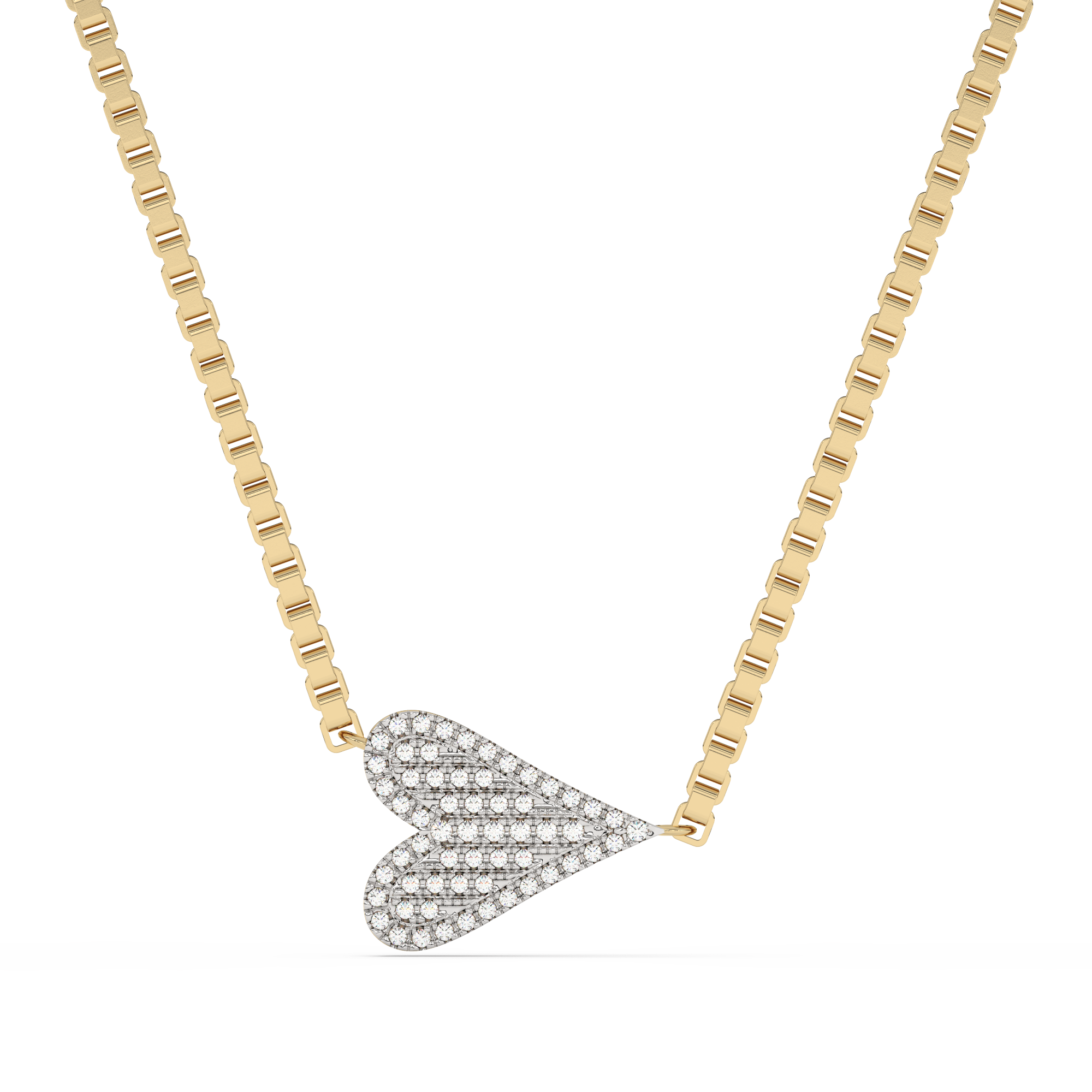 .09ct G SI 14K Yellow Gold Diamond Sideways Heart Pendant Necklace 18" Long