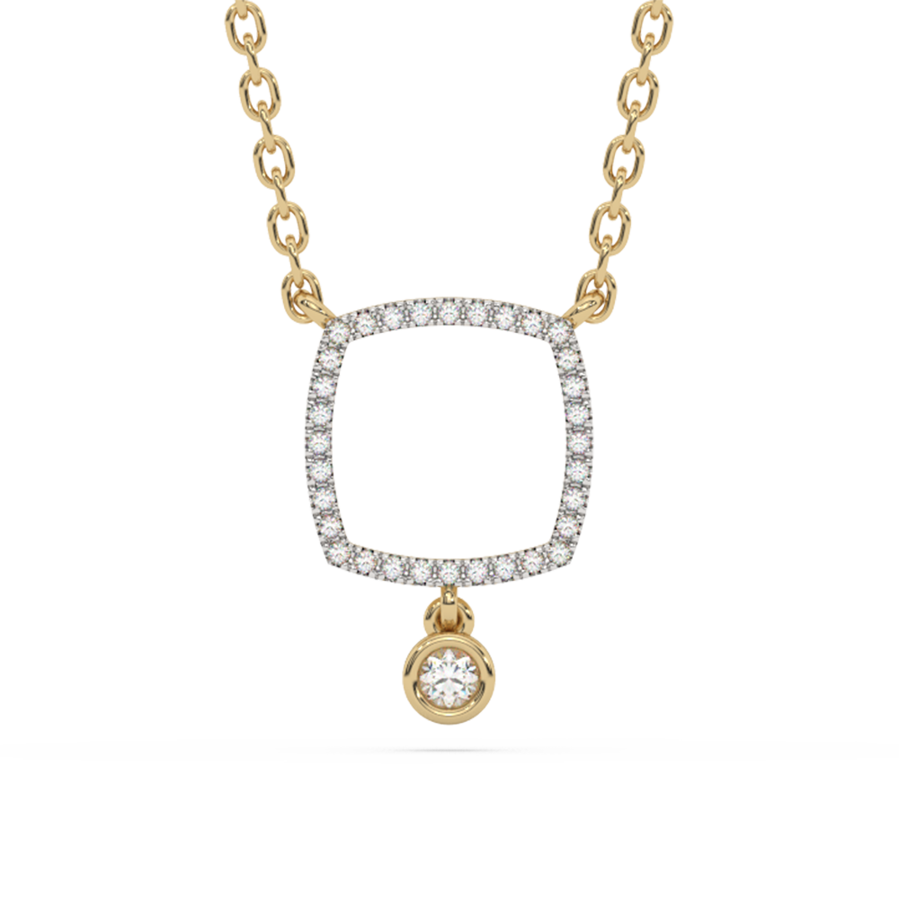 .09ct G SI 14K Yellow Gold Diamond Cushion Shape Pendant Necklace 18" Long