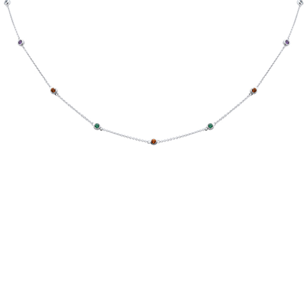 SPECIAL! .52ct G SI 14K White Gold Multicolor Gemstone Necklace 16" + 2" Ext