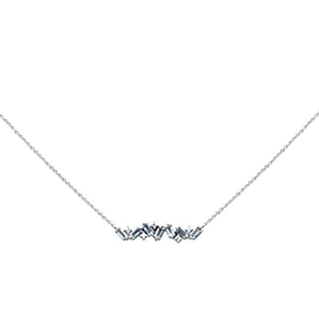 SPECIAL! .83ct G SI 14K White Gold Diamond Aquamarine Gemstone Necklace 16+"Long