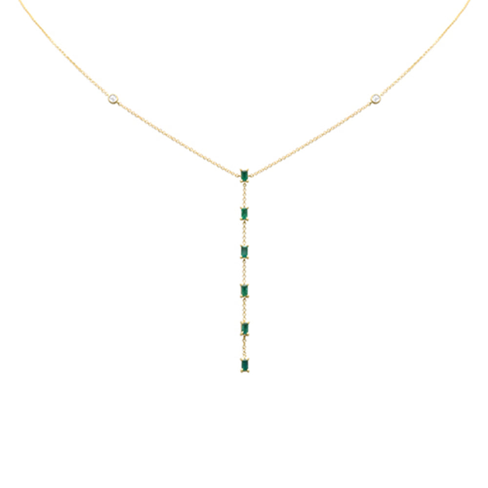 SPECIAL! .68ct G SI 14K Yellow Gold Diamond & Emerald Gemstone Lariat Necklace 16" + 2" Ext