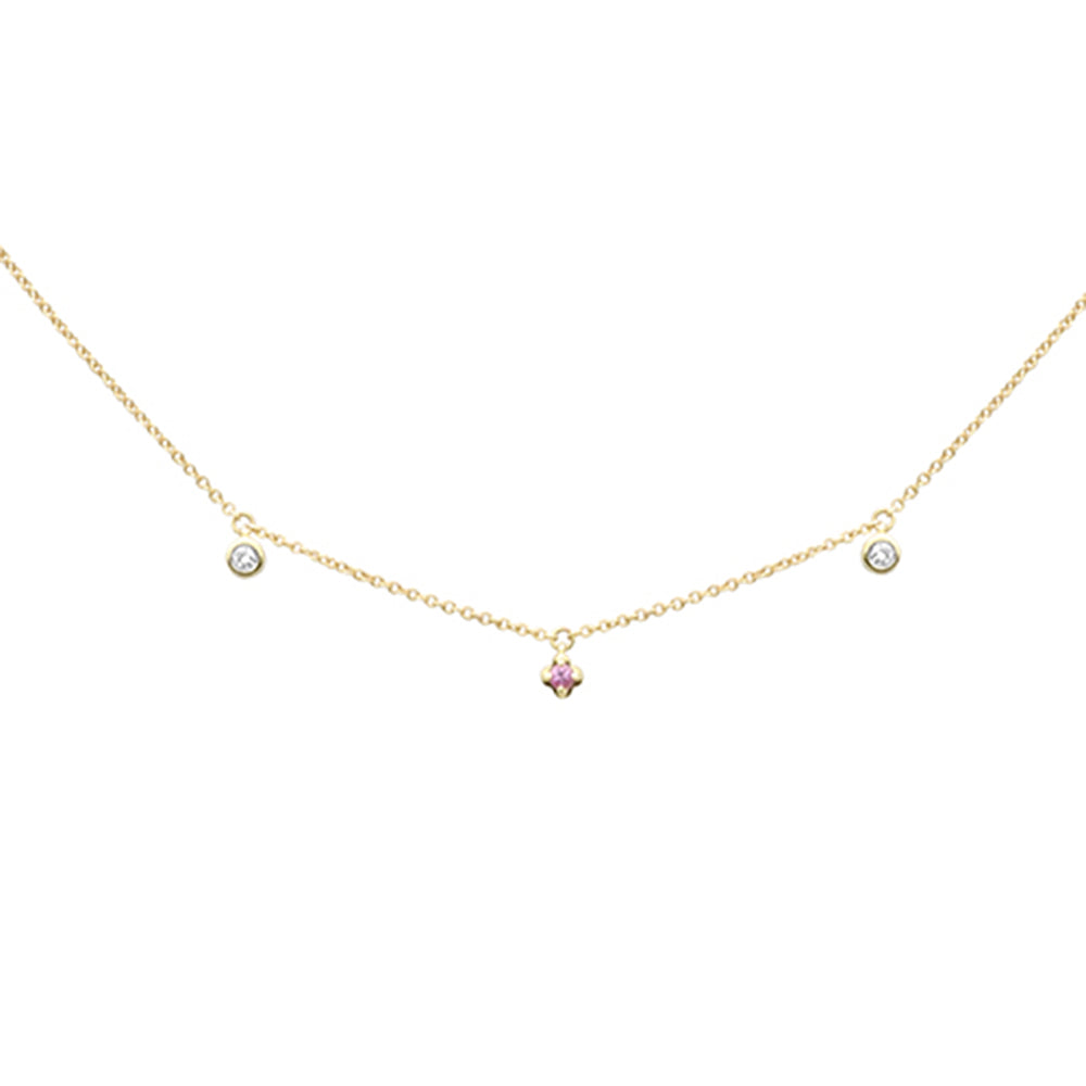 .09ct G SI 14K Yellow Gold Diamond & Pink Sapphire Necklace 16+2" Ext
