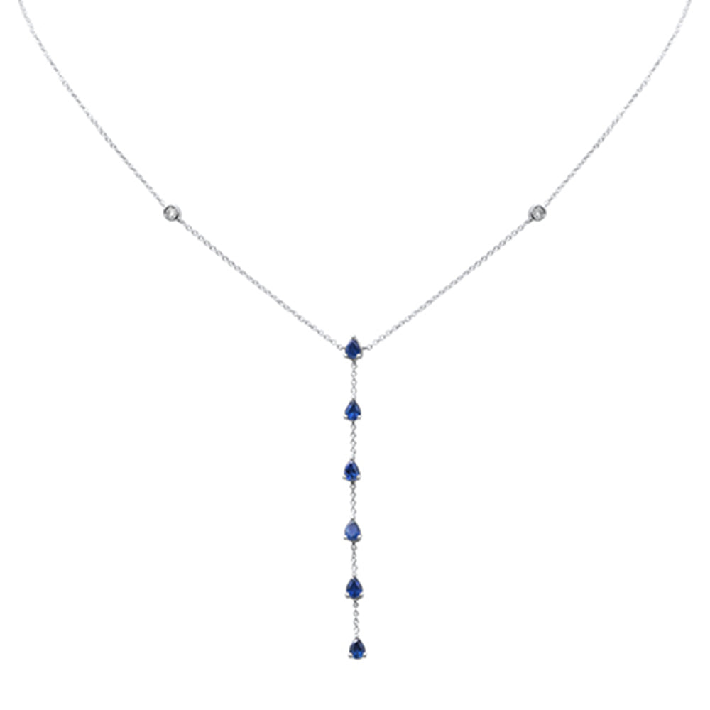 SPECIAL! 1.16ct G SI 14K White Gold Diamond & Blue Sapphire Drop Lariat Necklace 16+2" Ext