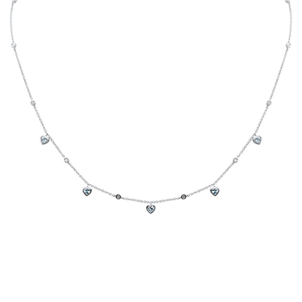 SPECIAL! .60ct G SI 14K White Gold Diamond & Aquamarine Heart Necklace 16+2" Ext