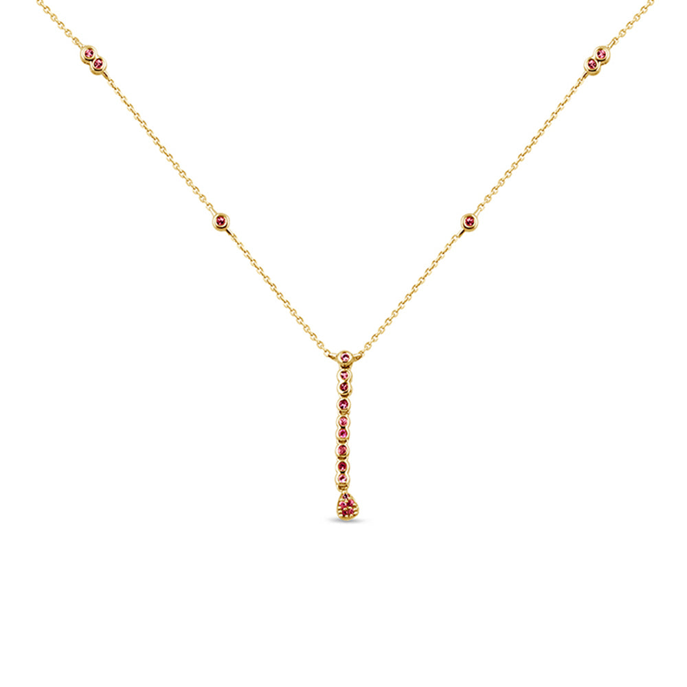 SPECIAL!.20ct G SI 14K Yellow Gold Pink Sapphire Drop Necklace 16+2" Ext