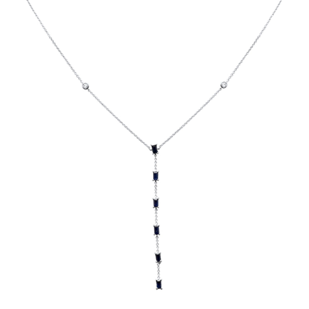.07ct,.86ct G SI 14K White Gold Diamond Blue Sapphire Drop Pendant Necklace 16+2" Ext