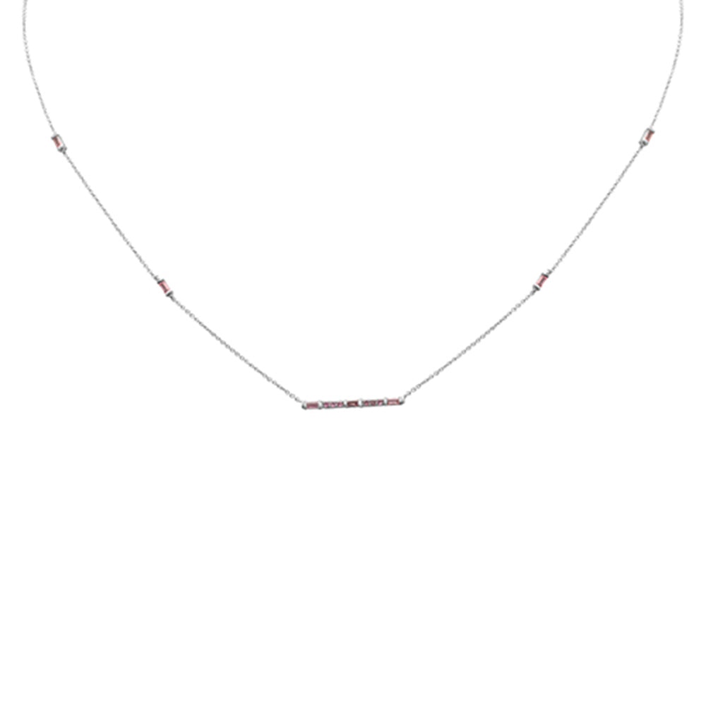 SPECIAL! .40ct G SI 14K White Gold Pink Sapphire Bar Pendant Necklace 16+2" Ext