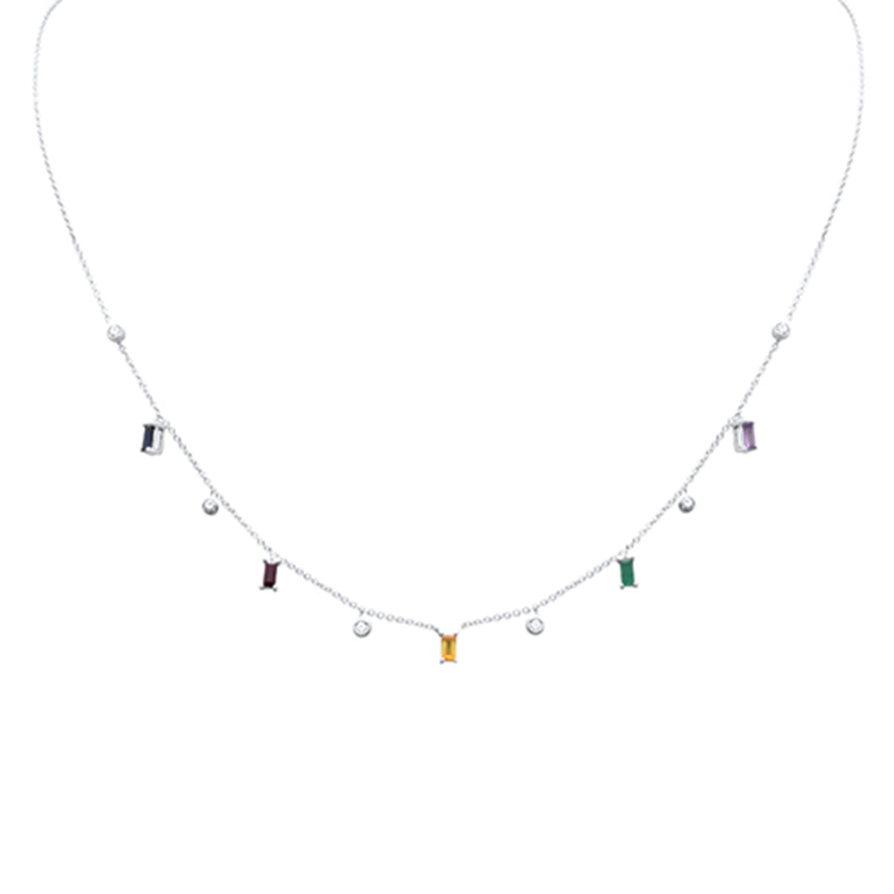 SPECIAL! .88ct G SI 14K White Gold Diamond & Multi Color Gemstone Necklace 16+2" Ext