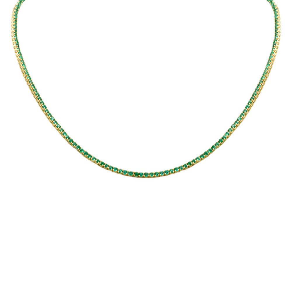 SPECIAL! 3.30ct G SI 14K Yellow Gold Round Emerald Gemstone Tennis Necklace 12+4" Ext