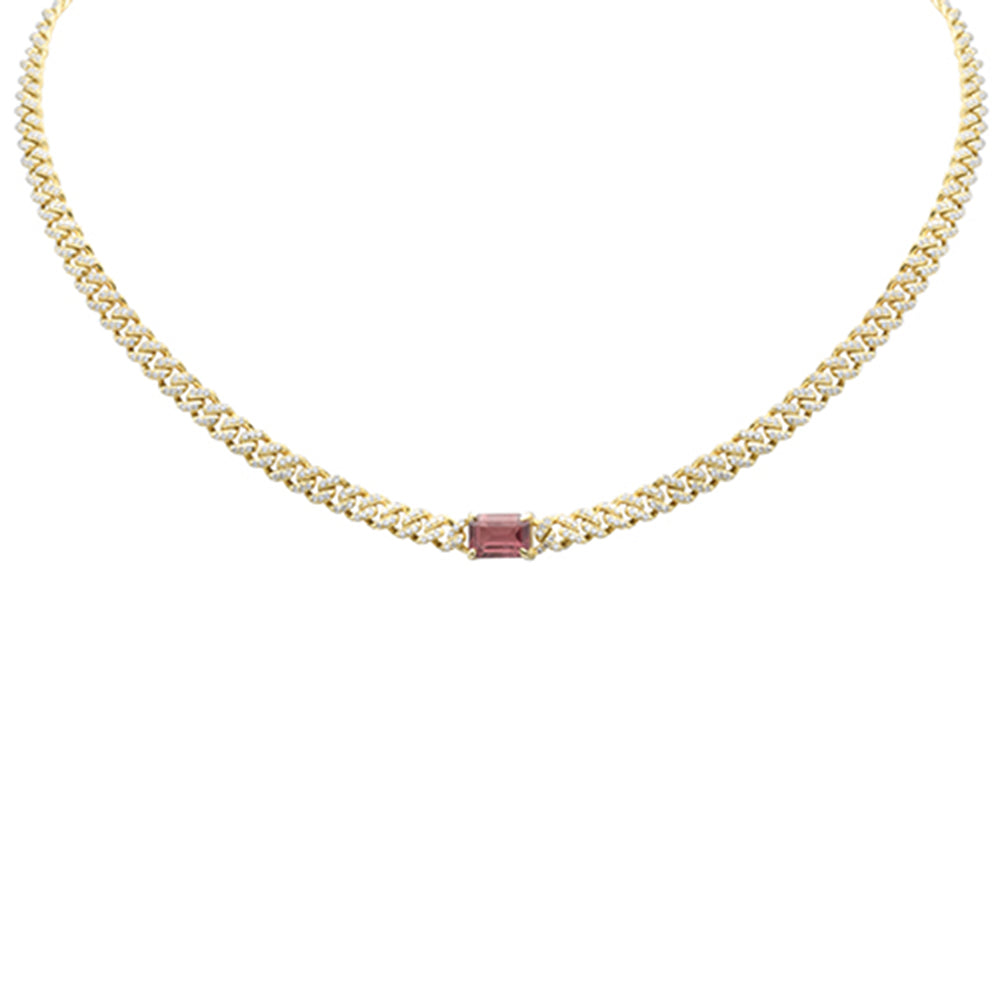 SPECIAL! 2.56ct G SI 14K Yellow Gold Diamond & Pink Tourmaline Emerald Cut Gemstone Necklace 13+3" Long