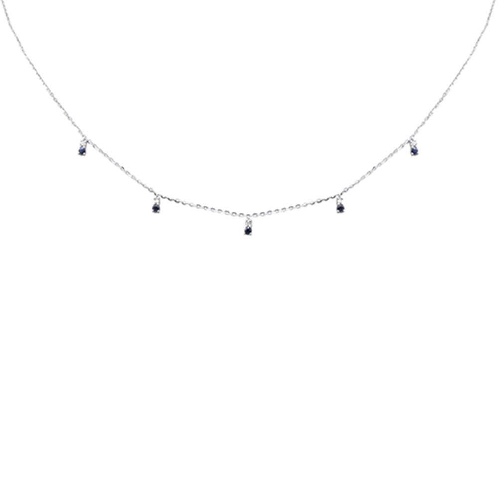 .30ct G SI 14K White Gold Diamond & Blue Sapphire Pendant Necklace 16 + 2" Ext