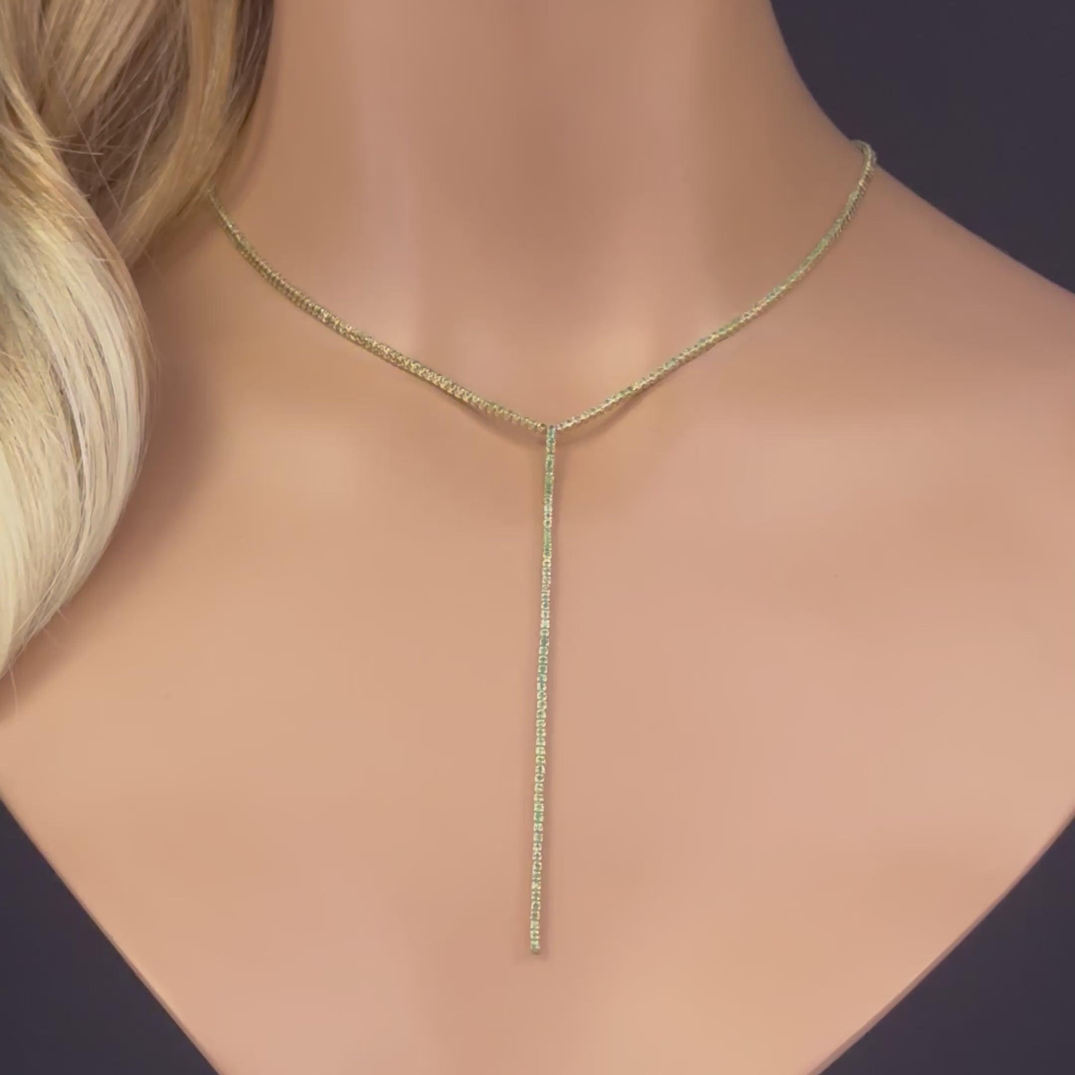 SPECIAL! 2.48ct G SI 14K Yellow Gold Emerald Gemstone Lariat Tennis Necklace 14 + 4" Ext