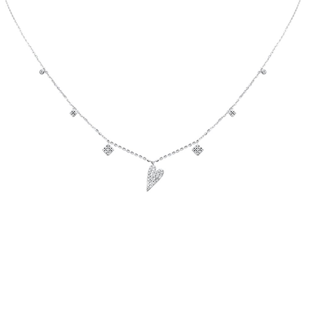 SPECIAL! .26ct G SI 14K White Gold Diamond Heart Dangling Pendant Necklace 16+2" Long