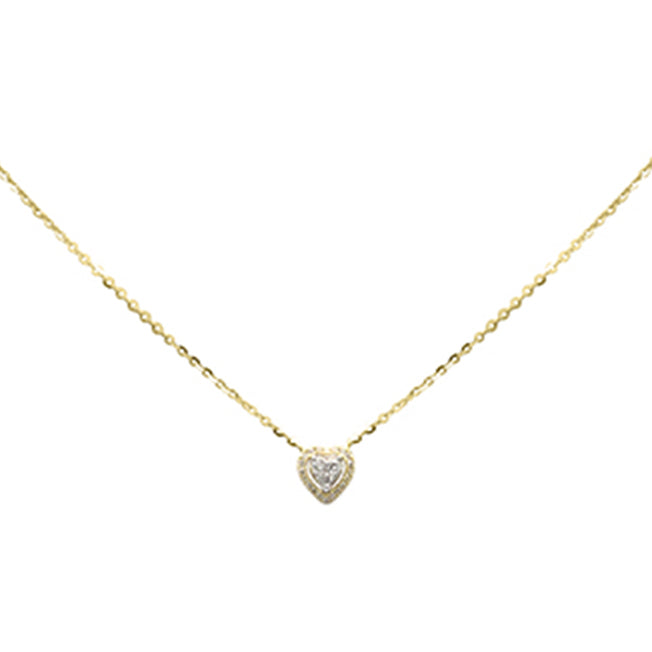 .10ct G SI 14K Yellow Gold Diamond Heart Pendant Necklace 16+2" Long